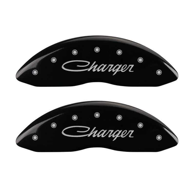 MGP Caliper Covers 12005SCHSBK Cursive & Charger Black Caliper Covers - Engraved Front & Rear, Set of 4