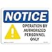 OSHA Notice Signs - Notice Operation by Authorized Personnel Only | Vinyl Label Decal | Protect Your Business, Work Site, Warehouse | Made in The USA