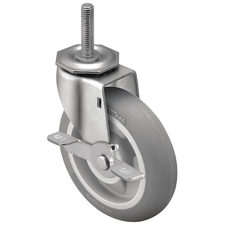 Shepherd Regent Series 5" Diameter Monotech Wheel Swivel Caster with Tread Brake, 1/2" Diameter x 1-1/2" Length UNC13 Threaded Stem, 160 lbs Capacity, Zinc Finish