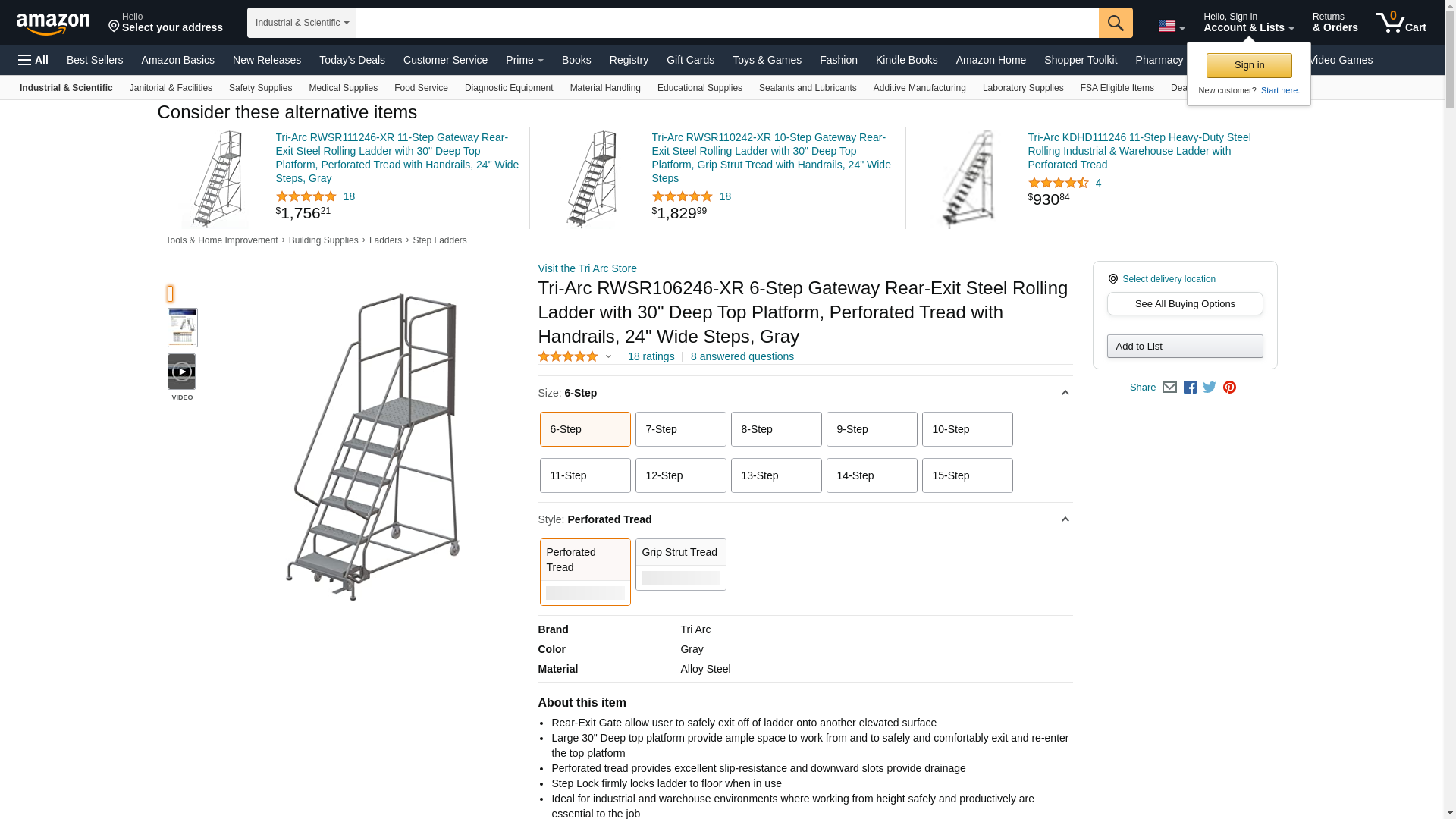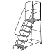 Tri-Arc RWSR106246-XR 6-Step Gateway Rear-Exit Steel Rolling Ladder with 30" Deep Top Platform, Perforated Tread with Handrails, 24" Wide Steps, Gray