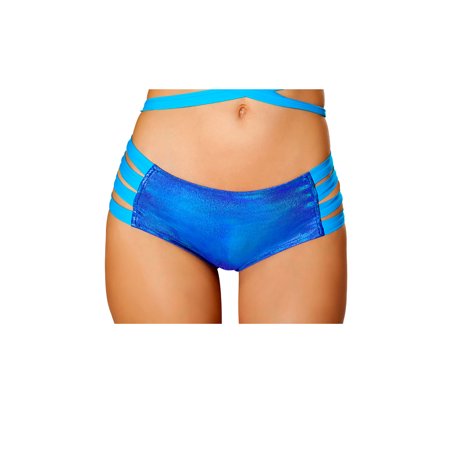 These fun booty shorts feature an iridescent design, multi-strapped side panels, and a cheeky cut back. (Top not included.)