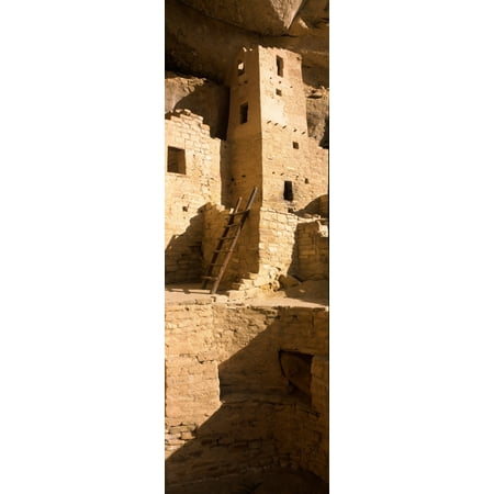 Panoramic Images Stretched Canvas Art - Ladder at house, Cliff Palace, Mesa Verde National Park, Colorado, USA - Large 27 x 9 inch Wall Art Decor Size.
