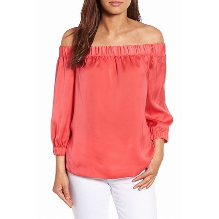 Halogen NEW Pink Teaberry Women's Size XL Off-Shoulder Satin Blouse
