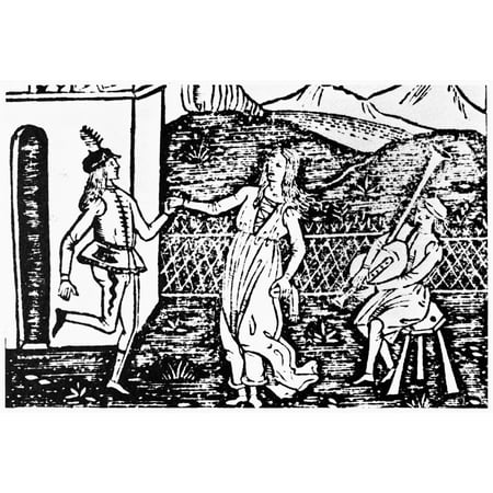 Italian Dancers C1600 Nitalian Couple Dancing To Bagpipes Woodcut Italian C1600 Poster Print by Granger Collection