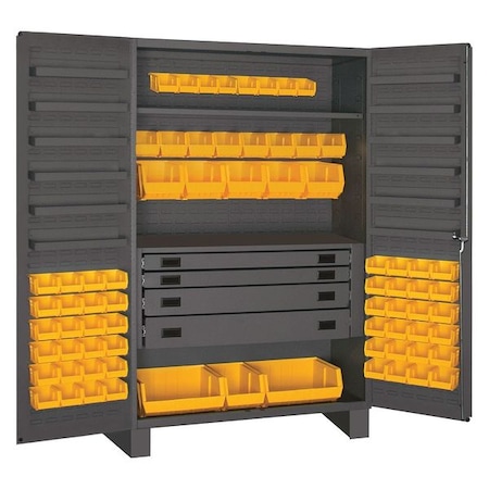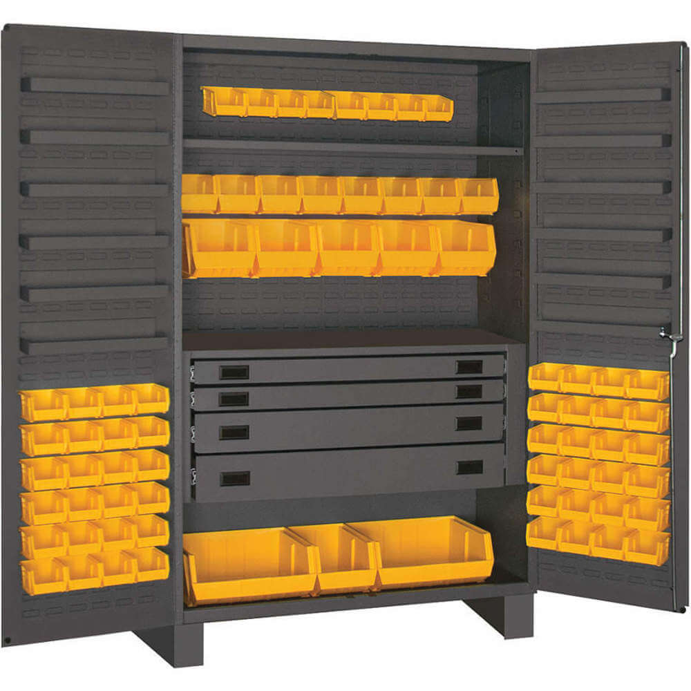 Toolschest.com|Toolschest.com. Durham JCBDLP724RDR-95 14 Gauge Flush Style 12 Door Shelves Lockable Cabinet with 72 Yellow Hook on Bins & Adjustable Shelf & 4 Drawers, Gray - 48 in.