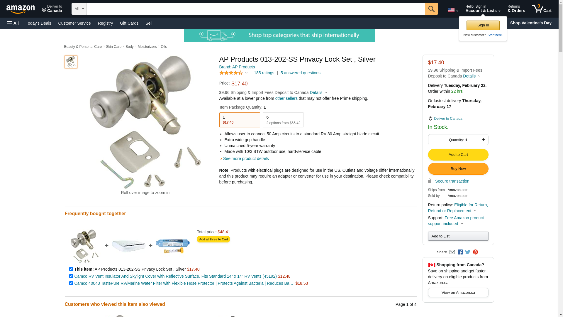 AP Products 013-202-SS Privacy Lock Set , Silver