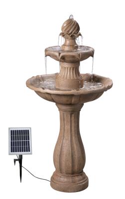 - TRADITIONAL GARDEN: Mediterranean looks with a high-tech upgrade – this outdoor solar fountain harnesses the energy of the sun to send water up through a bubbler with spiral carved detailing before it falls into two tiers. The textured sandstone finish lends a light look to the sculptural pedestal and scalloped basins of this fountain. Place this picturesque fountain among your flower beds in any garden or classic Tuscan outdoor living room.