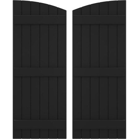 Ekena Millwork ARW401BE621X34BLH Americraft Six 3 Exterior Real Wood Joined Board-n-Batten Shutters w/Elliptical Top (Per Pair), 21"W x 34"H, Black
