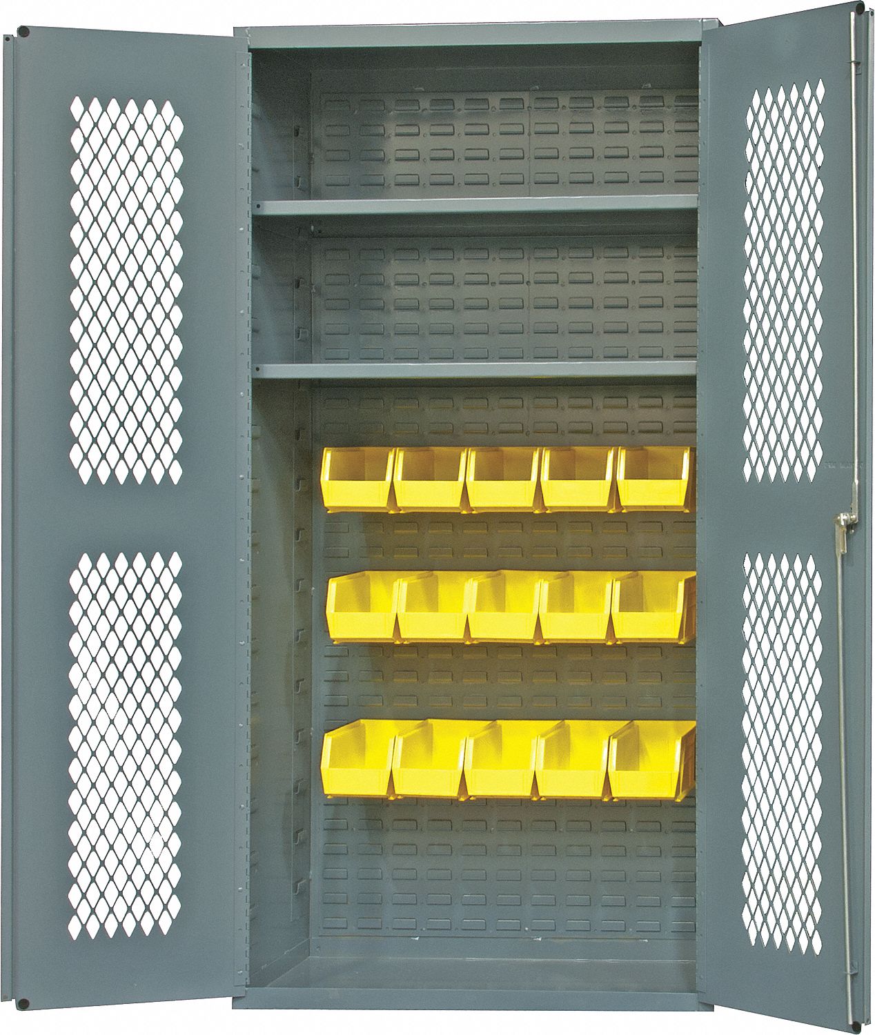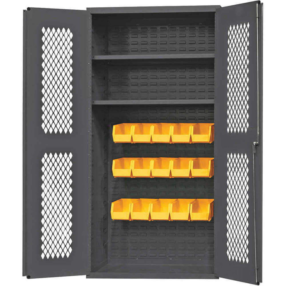 Durham Heavy Duty Welded 14 Gauge Steel Ventilated Cabinet with 15 Bins, EMDC36242S15B95, 900 lbs Capacity, 24" Length x 36" Width x 72" Height, 2 Shelves