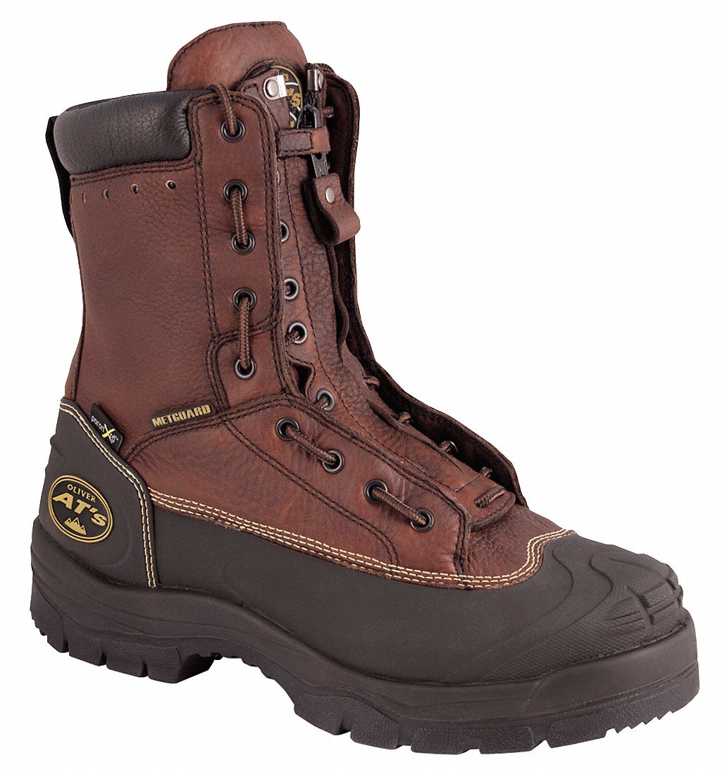 | Feature | <b>Price For:</b> Each <b>Insulated</b>: Yes <b>Upper Material Description</b>: Full grain, barnyard tested brown leather <b>Removable Insole</b>: Yes <b>Completely Non Metallic</b>: No <b>Toe Type</b>: Steel <b>Non-Marking Sole</b>: Yes <b>Puncture Resistant Insole</b>: Yes <b>Electrical Hazard Rated</b>: Yes <b>Standards</b>: ASTM F2413-11 M I/75 C/75, MT/75, SD <b>Heel Height</b>: Less Than 1/2" <b>Ninety Degree Heel</b>: No <b>Height</b>: 8" |
