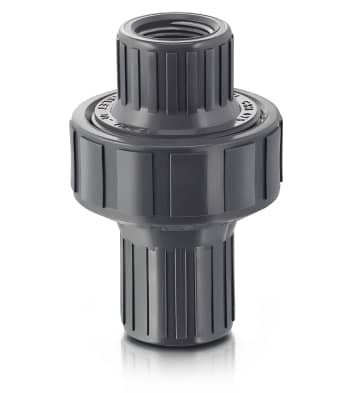 - Check valve with diaphragm design helps prevent reverse flow of corrosive liquids
