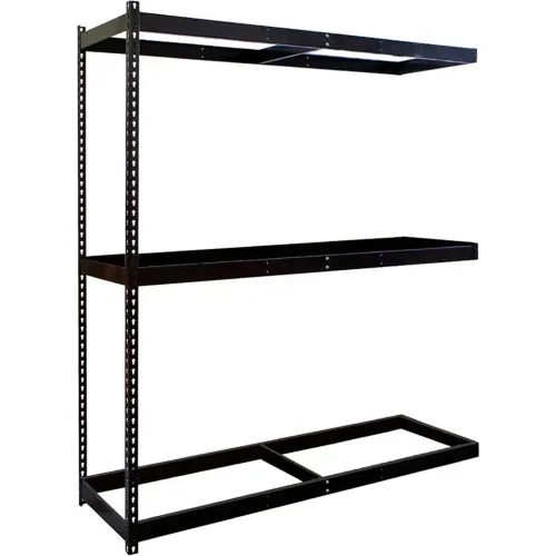 Hallowell While Parchment remains an affordable all-time favorite, our prestigious black Rivetwell shelving is a great way to add style to your facility. Midnight Ebony powder coat finish with precision smooth surfaces will look fantastic in your office as well as your warehouse. All units included center supported levels and are available without deck or your choice of four deck types. Features: -Shelve. -Color: Midnight Ebony. -3 Levels. -Add-on unit. -Knock-Down. -Decking not included. -Cold rolled sheet steel. -Manufacturer provides 1 year warranty. -Made in the USA. HL2598 Size: 72" W x 36" D