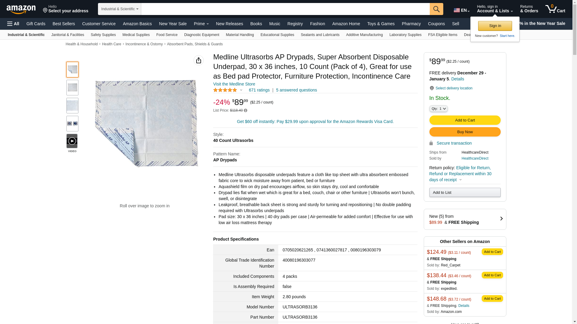 | Feature | This item may differ from image shown. The item for sale is Medline Ultrasorbs AP Premium Disposable DryPad - Ultrasorbs AP, 31" x 36" - Qty of 40 - Model ULTRASORB3136 - Latex Free |