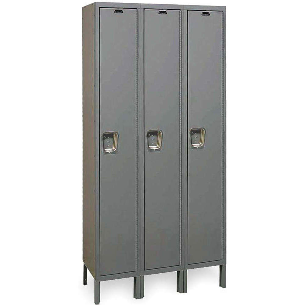 Hallowell UY3288-1A-HG Maintenance Free Quiet KD Metal Locker, Assembled, 3-Wide Grouping, 1 Tier, 72" Opening Height, 78" Frame Height, 12" Width x 18" Depth, Gray