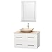 Wyndham Collection Centra 36 inch Single Bathroom Vanity in Matte White, Ivory Marble Countertop, Arista Ivory Marble Sink, and 24 inch Mirror