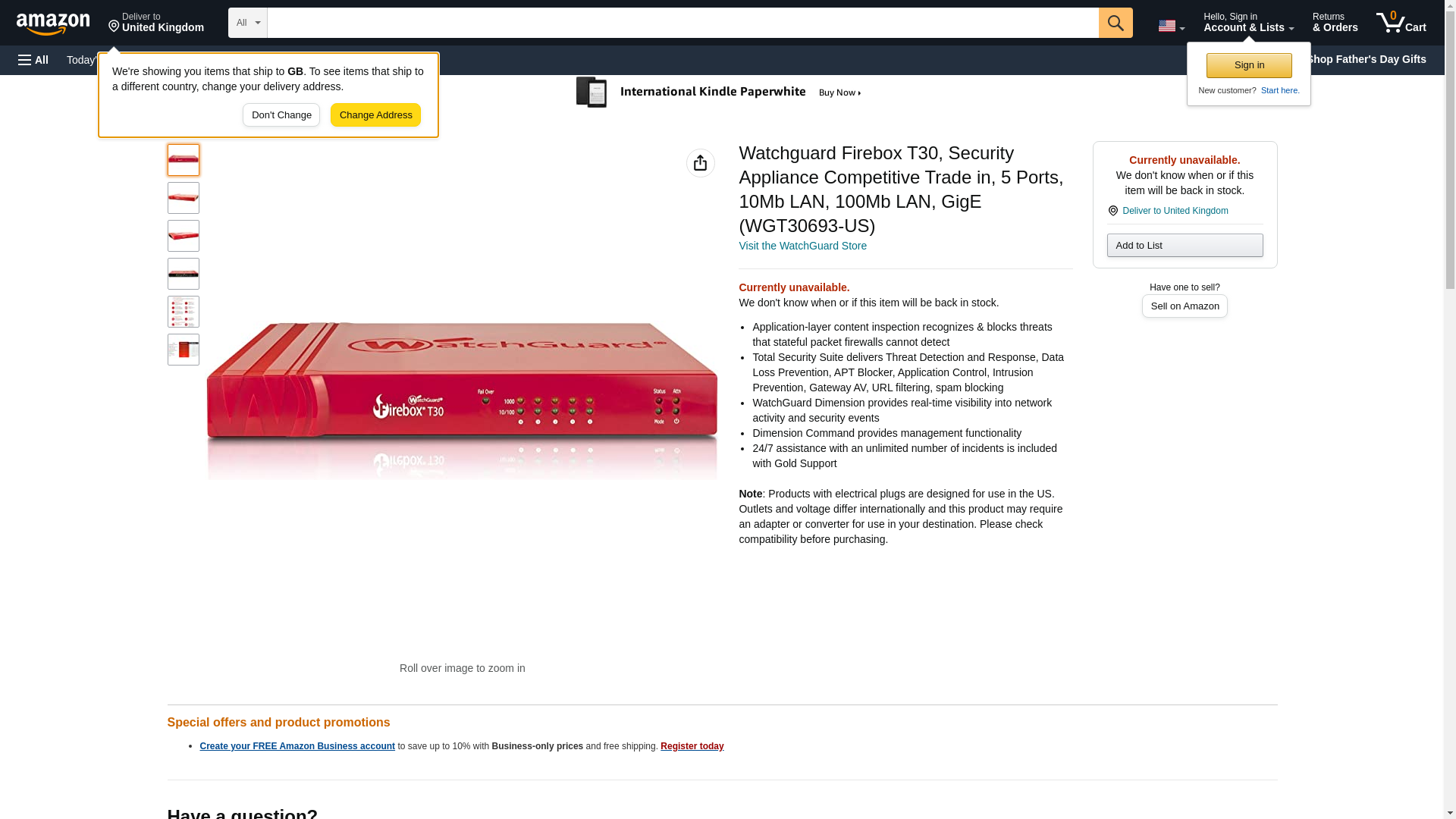 Watchguard Firebox T30, Security Appliance Competitive Trade in, 5 Ports, 10Mb LAN, 100Mb LAN, GigE (WGT30693-US)