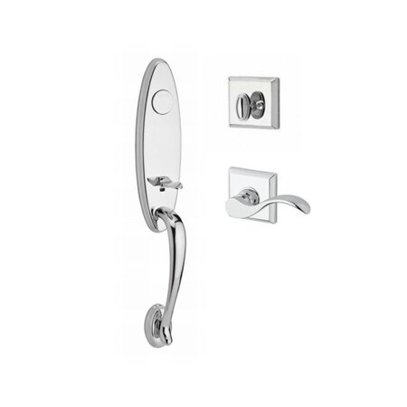 Baldwin Reserve FDCHEXCURRTSR260THK Full Dummy Chesapeake Handleset Right Hand Curve Lever and Traditional Square Rose For Thick Door Bright Chrome Finish