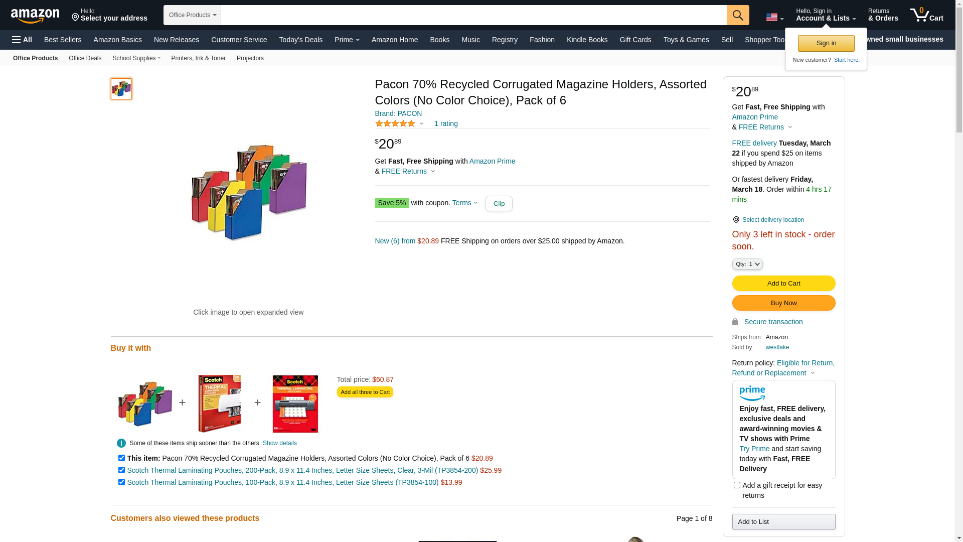 - Assorted 6-pack includes: red, yellow, blue, orange, green, and purple. Store and display your magazines with these durable corrugated holders. The coated finish helps protect.
