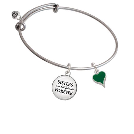 Silver Tone Small Long Green Heart Glass Dome Sisters are Best Friends Forever Expandable Bangle Bracelet. Silver Tone, hand enameled charms. Charm size is approx. 0.58 x 0.41 x 0.11 inches (HxWxD) including loop. Glass dome charm is approx: 0.9 x 0.7 x 0.2 inches (HxWxD) including loop. High quality printed paper sealed under a glass dome in a metal frame. 1.7 mm Expandable Bangle Bracelet is approx. 2.5 inches in diameter and can open up to 3.25 inches. Also available in popular themes such as Balance, Family, Faith, Scriptures and many more! These bracelets look great layered. Featured item is an exclusive Delight & Co. design. We are a family owned company for over 35 years in the U.S.A. PLEASE NOTE: Our products are lead safe, but are not intended for children 14 years and younger.