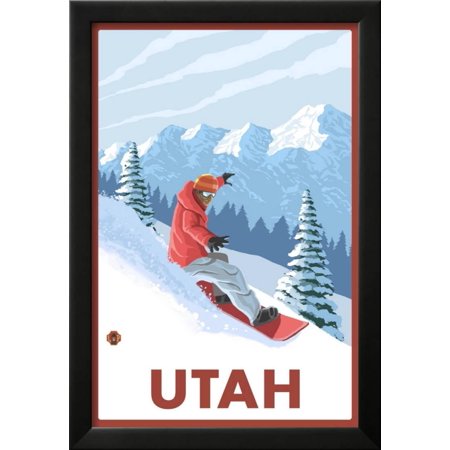 <ul> <li>Title: Snowboarder Scene - Utah</li> <li>Artist: Lantern Press</li> <li>Product Type: Framed Art Print</li> <li>Framed in SOHO Black</li> <li>Arrives ready-to-hang for fast, simple installation</li> <li>Framed Size: 17x24 in.</li> <li>Handcrafted in the USA</li> </ul>