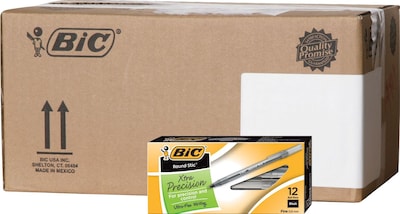 BIC Round Stic Xtra Precision Ballpoint Pens, Fine Point, Black, 432/Carton (GSF11BLKCT) | Quill.com