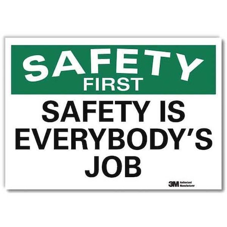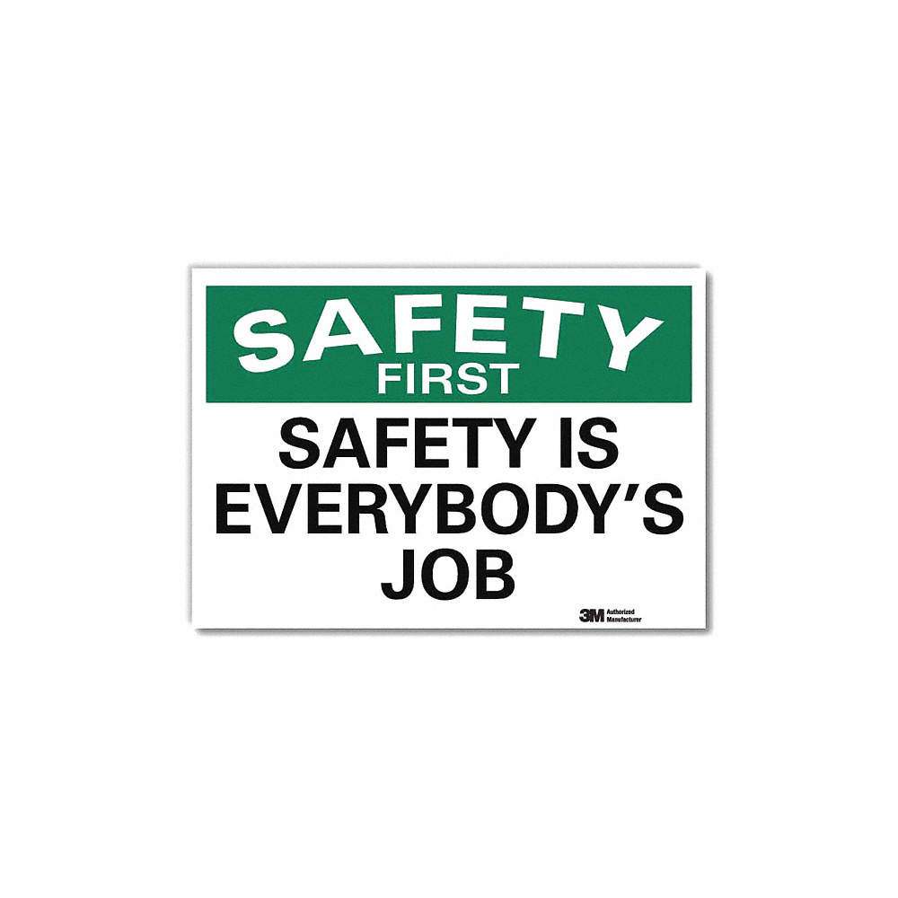 Safety Decal, Vertical Rectangle, Number of Printed Sides 1, English, Sign Format Traditional OSHA, Sign Legend Safety Is Everybody's Job, Sign Legend Background Color White, Sign Legend Style Text