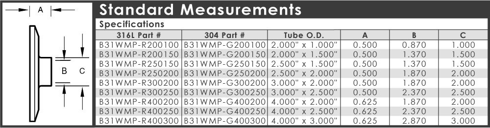 B31WMP-G250200 2.5" x 2" 304SS Reducing Ferrule from Dixon Valve & Coupling Co