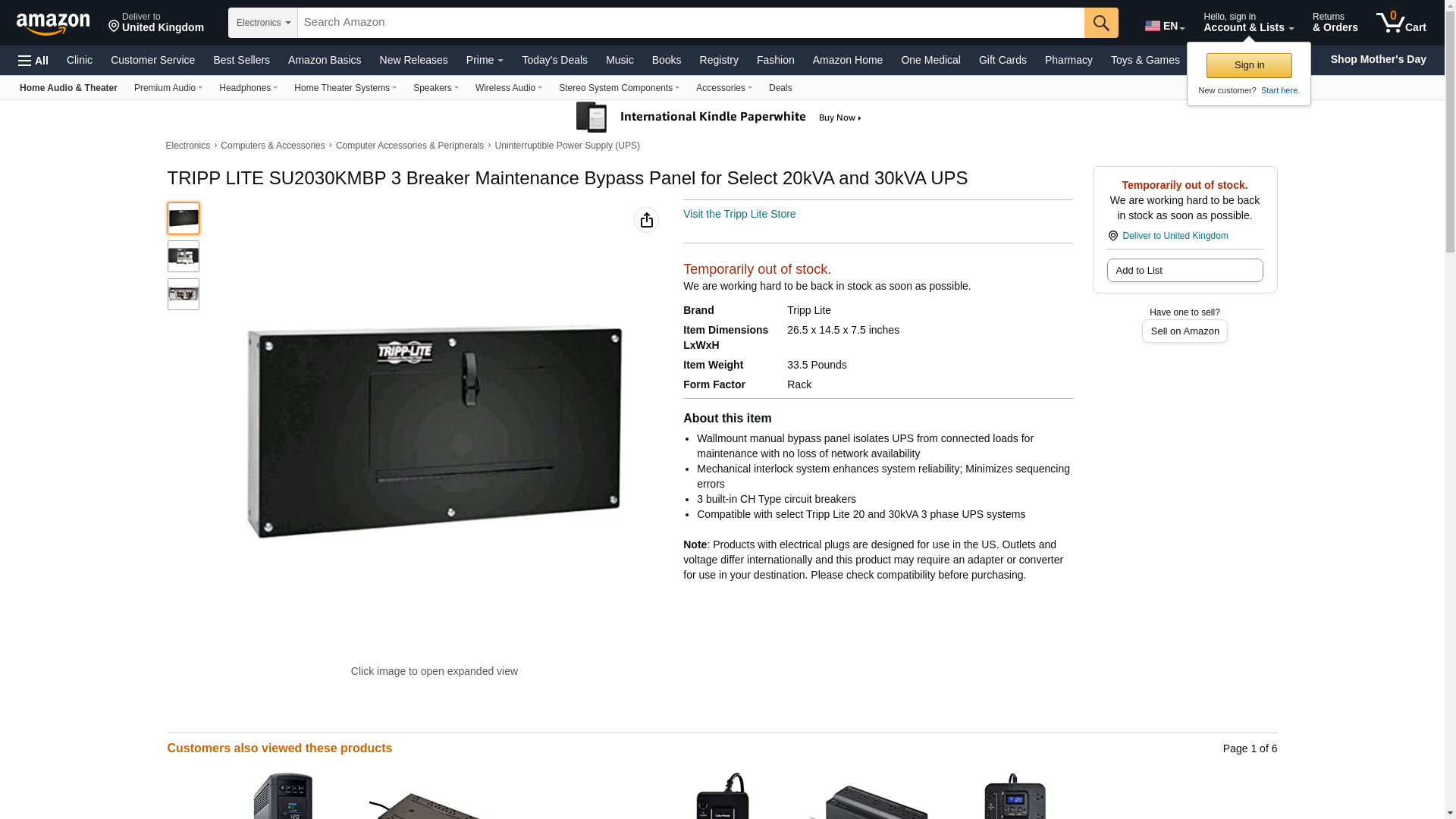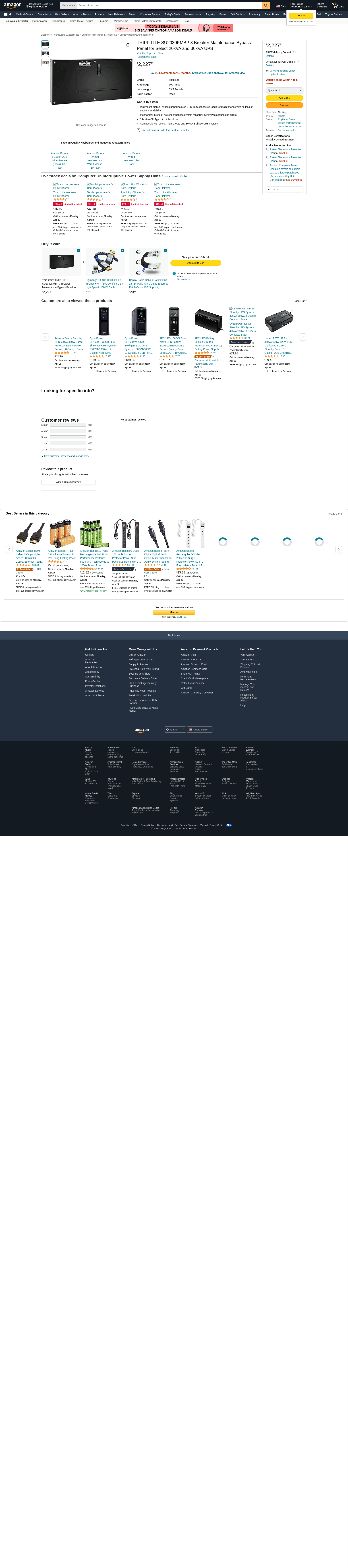 Amazon.com: TRIPP LITE SU2030KMBP 3 Breaker Maintenance Bypass Panel for Select 20kVA and 30kVA UPS : Electronics