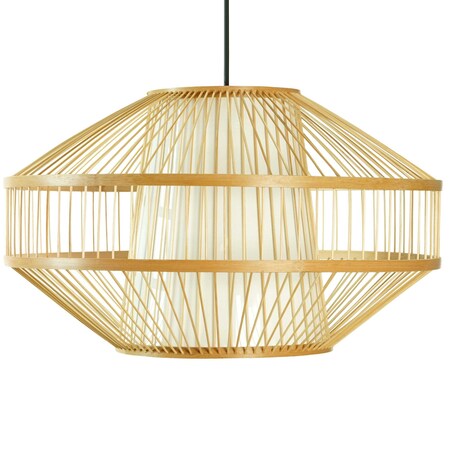 Modern Bamboo Lantern Pendant Lamp Hanging Light Fixture for Entryway and Living Room, Medium