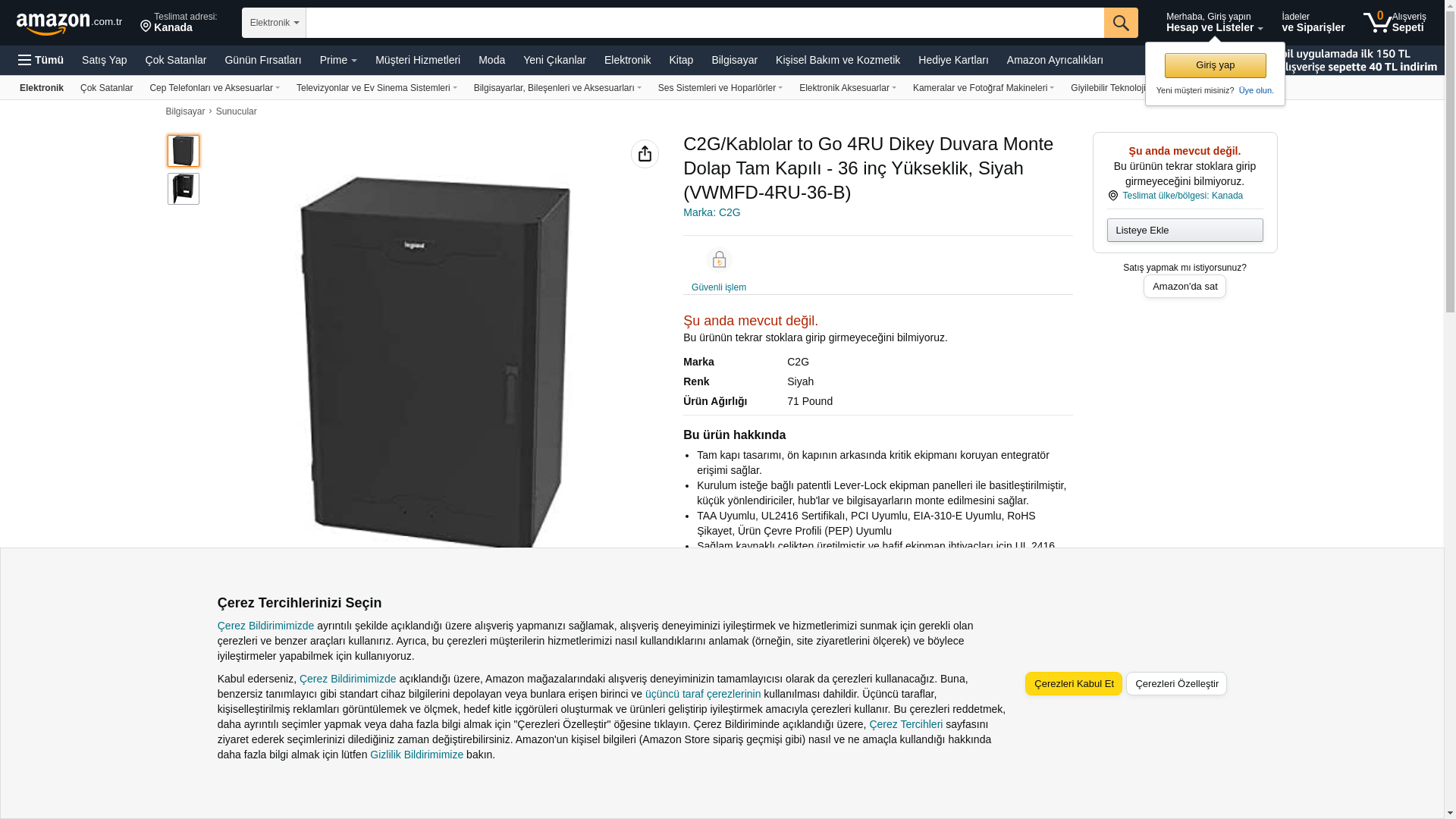 C2G VWMFD-4RU-36-B 36 in. 4RU Vertical Wall-Mount Cabinet, Full Door