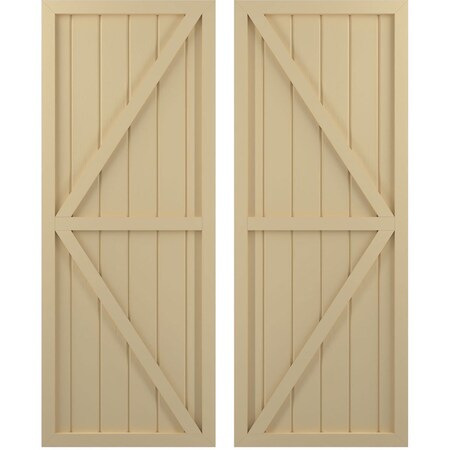 Ekena Millwork ARW102BF621X41NTH Americraft Six Exterior Real Wood Two Equal Panel Framed Board-n-Batten Shutters w/Double Z-Bar (Per Pair), 21"W x 41"H, Natural Twine
