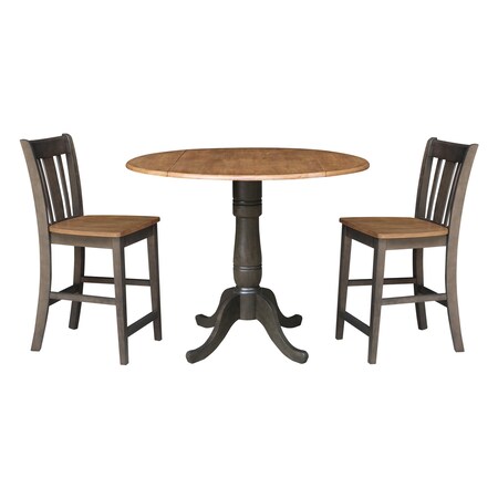International Concepts 42 in. Round Dual Drop Leaf Counter Height Table with 2 Splatback Stools-3 Piece Hickory/Washed Coal Dining Set