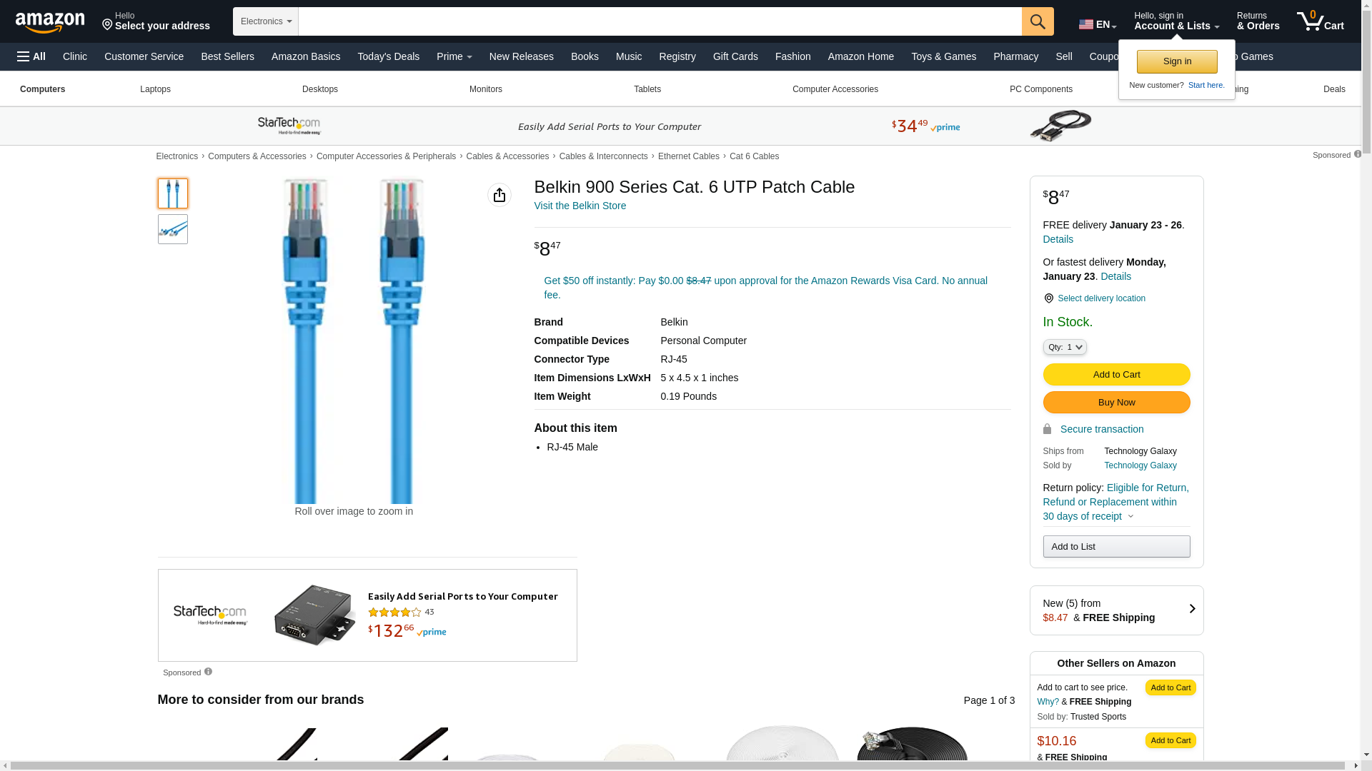 Get Fast Service & Low Prices on A3L980-08-BLU-S Belkin CAT6 Snagless Patch Cable RJ45M/RJ45M; 8 ft Blue and Much More at PROVANTAGE.
