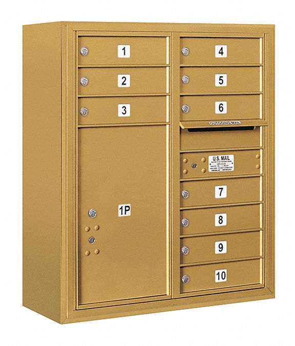 Salsbury Industries 3809D-10GFP Front Loading/Double Column Surface Mounted Horizontal 4C Mailbox, Gold