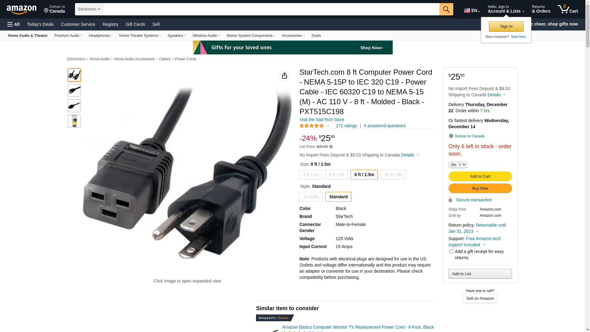 Amazon.com: StarTech.com 8 ft Computer Power Cord - NEMA 5-15P to IEC 320 C19 - Power Cable - IEC 60320 C19 to NEMA 5-15 (M) - AC 110 V - 8 ft - Molded - Black - PXT515C198 : Electronics