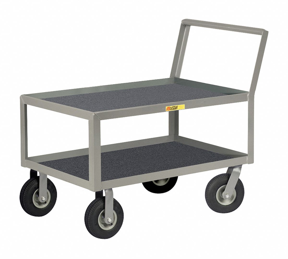 Steel Low-Profile Instrument Cart with Lipped Metal Shelves, Raised, 2 Shelves, 1,200 lb