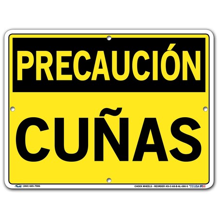 Vestil Caution Sign SI-C-68-B-AL-080-S Aluminum .080" overall size 12.5"W x 9.5"H CHOCK WHEELS, CUÑAS