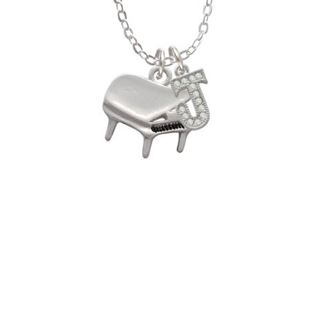 Silver Tone Piano - J - Crystal Initial Sophia Necklace. Silver Tone, hand enameled charms. Charm size is approx. 0.65 x 0.63 x 0.08 inches (HxWxD) including loop. 1.5mm Silver Tone Dainty Cable Chain Necklace: 18 inches with 1 inch extender chain. Crystal Initial is approximately 0.38 Inches long not including loop. Lobster Claw Clasp. Dainty and delicate, the Sophia Collection is about wearing an expression of what she cherishes, with just a little bling to brighten her day. Please notify us if you would like an initial not listed here. We are a family owned company in the U.S.A since 1977. PLEASE NOTE: Our products are lead safe, but are not intended for children 14 years and younger.