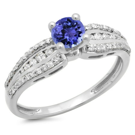 She'll know your commitment is for a lifetime when you slip this gorgeous diamond engagement ring on her finger. Fashioned in exquisite 10K White Gold it features a lined with white diamonds that leads to a prong-set 0.50 ct round tanzanite center stone. Buffed to a brilliant shimmer this ring glows with 0.75 ct. of tanzanite & diamonds. The overall appearance of this piece is excellent.