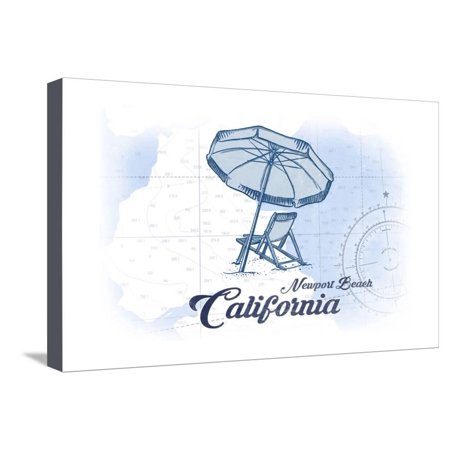 <ul> <li>Title: Newport Beach, California - Beach Chair and Umbrella - Blue - Coastal Icon</li> <li>Artist: Lantern Press</li> <li>Product Type: Stretched Canvas Print</li> <li>Expertly finished and printed on artist-grade cotton</li> <li>Stretched & Ready to Hang</li> <li>Handcrafted in the USA</li> </ul>