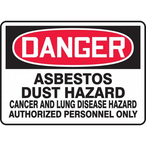 OSHA Danger Safety Sign: Asbestos Dust Hazard - Cancer And Lung Disease Hazard - Authorized Personnel Only 10" x 14" Dura-Fiberglass 1/Each - MCAW108XF - Jendco Safety Supply