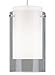 Translucent cylinder over a white case glass cylinder, highlighted with three metal details. Includes low-voltage, 50 watt halogen bi-pin lamp or 6 watt replaceable LED module and six feet of field-cuttable suspension cable.