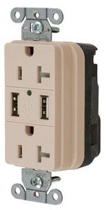 Hubbell Wiring Devices Mains Receptacle, Dual Usb, 20A, 125V, Almond - SNAP20USBLA