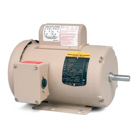 Keep the Baldor-Reliance--1HP, 1725RPM, 1PH, 60HZ, 143T, 3524L, TEFC, F1, AC Motor on hand to maintain the functionality of livestock, crop and dairy equipment that require single-speed, 4-pole AC motors, including crop dryers, grain stirrers, augur drives, vacuum pumps and aeration fans. The Baldor 1 hp single-phase motor puts out up to 1725 rpm under load, operating at either 115V or 208-230V. The Baldor 1 hp motor is totally enclosed and fan-cooled, to protect it from environmental elements. The motor's steel-frame housing provides other protections against dirt and moisture. Low-friction ball bearings in the Baldor AC motor are permanently double-sealed and lubricated with high-temperature grease, and a V-ring slinger and lip seal keep the inner shaft clean. Condensation-drain weep holes and gasketed conduit box provide moisture resistance for coils and terminals. The Baldor augur-drive motor has a coating of tan epoxy paint to protect the housing from rust.