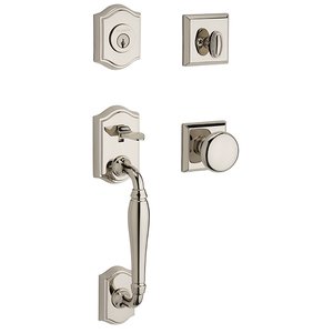 Baldwin Reserve - Single Cylinder Westcliff Handleset with Round Door Knob with Traditional Square Rose in Polished Nickel