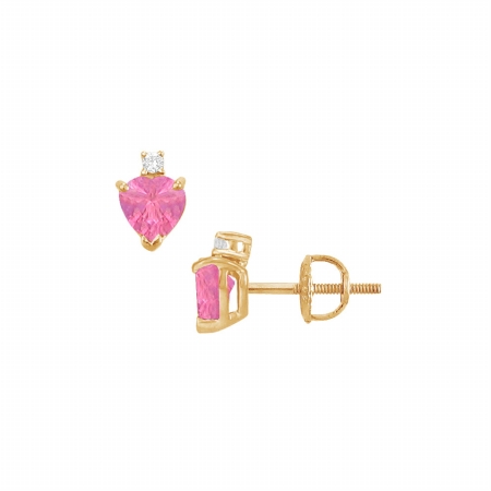 Fine Jewelry Vault UBUERHT600AGVYPS CZ & Created Pink Sapphire Stud Earrings, Yellow Gold Vermeil - 2.04 CT TGW ,