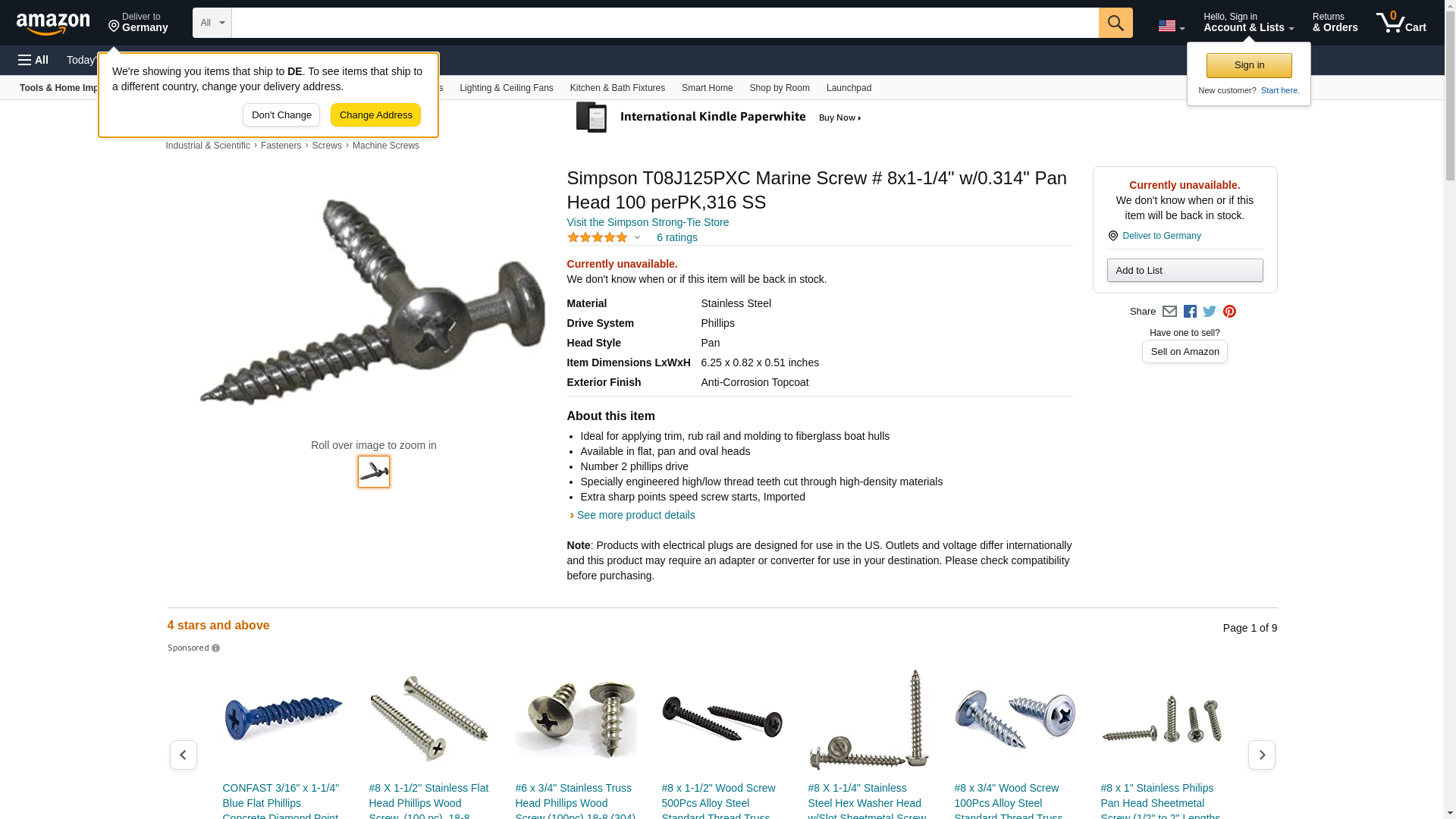 Simpson Strong Tie T08J125PXC Marine Screw Number 8 by 1-1/4-Inch with 0.314-Inch Pan Head 100 per Pack, 316 Stainless Steel