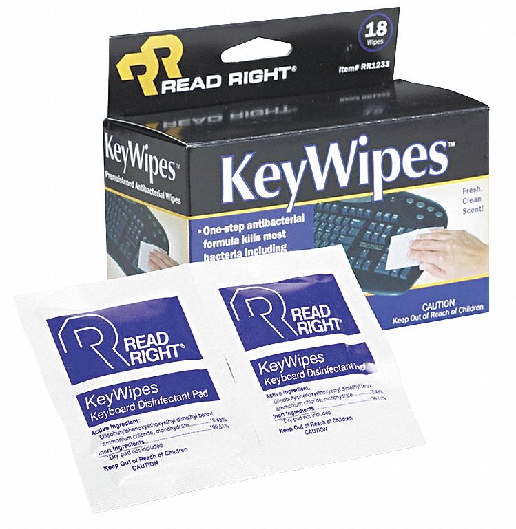 Read Right® KeyWipes Keyboard & Hand Cleaner Wet Wipes, 18/Box - REARR1233