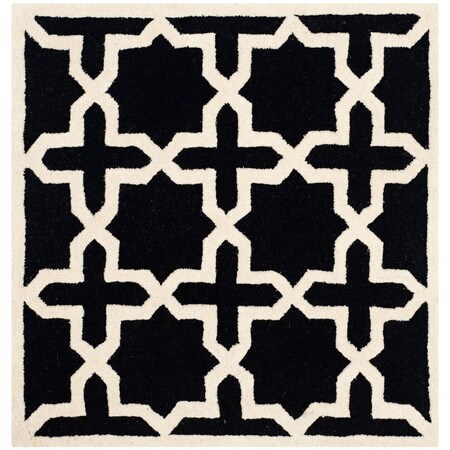 SAFAVIEH Cambridge Collection Area Rug - 4' Square, Black & Ivory, Handmade Moroccan Wool, Ideal for High Traffic Areas in Living Room, Bedroom (CAM125E)