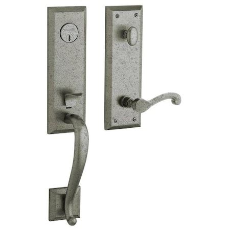 Configuration:Dummy set for right-hand door, Finish:Distressed Antique Nickel Baldwin's Images collection entrance locksets come in a number of traditional styles and finishes that coordinate with Baldwin interior latchset designs. Images collection locksets are constructed from forged brass with mechanical parts constructed from steel for maximum strength and smooth operation. The Stonegate Emergency Exit Lockset includes all necessary bolts, locks, and hardware. Designed for easy homeowner installation in standard pre-drilled doors and includes graphic installation instructions. Emergency exit feature allows interior knob or lever to simultaneously retract both the latch bolt and deadbolt for quick exit. Comes with adjustable latch and deadbolt for either 2-3/8' or 2' backset conditions. Deadbolt is saw-proof, with 1' throw when extended. Designed for doors 1' thick; for other thicknesses, use accessory conversion kit. 5' center-to-center distance between deadbolt and latch only.See options to choose standard or full dummy confi
